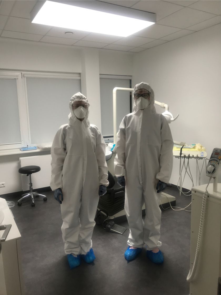 Kauno odontologijos klinika „Neodenta“ yra viena pirmųjų Lietuvoje, kurių specialistai karantino metu ne tik konsultuoja pacientus nuotoliniu būdu, bet ir teikia būtinąją pagalbą klinikoje. Pasak klinikos vadovės Eglės Kunčiuvienės, be galimybės kreiptis į odontologą likę žmonės pasijautė tarsi palikti likimo valiai, todėl reikėjo reaguoti operatyviai ir suderinus dėl odontologinės pagalbos karantino metu su Sveikatos apsaugos ministerija, pradėtos teikto būtinosios odontologinės paslaugos. Klinikos personalas, dirbantis su pacientais tiesiogiai, buvo aprūpintas visomis būtinomis apsaugos priemonėmis: respiratoriais, akiniais, veido skydais, galvos apdangalais, neperšlampamais chalatais ir lateksinėmis pirštinėmis.
