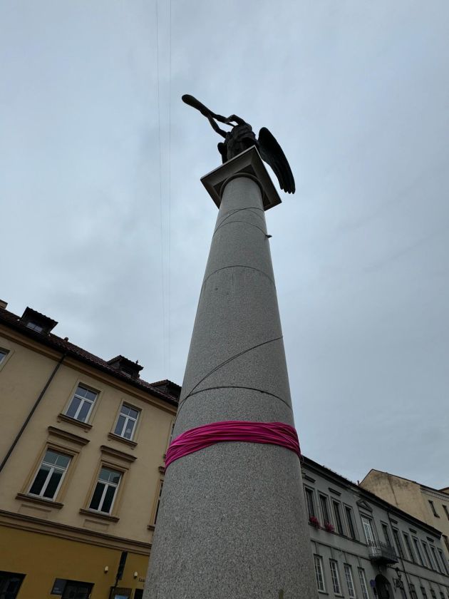 Rožiniai šalikai ant 6 žymių sostinės paminklų