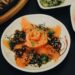 Rytietiško stiliaus salotos su vištiena ir baltuoju greipfrutu