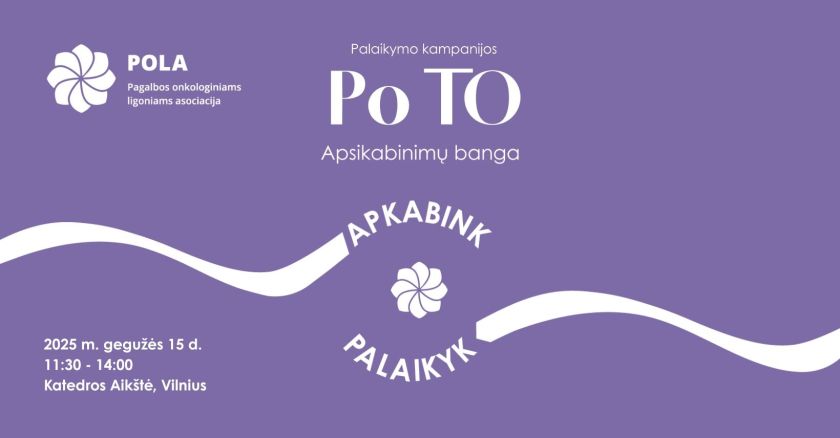 Pagalbos onkologiniams ligoniams asociacija (POLA) kviečia žiniasklaidos atstovus dalyvauti išskirtiniame bendruomenės renginyje – „Po TO: apsikabinimų banga“, kuris vyks 2025 m. gegužės 15 d. nuo 12:00 val. Vilniaus Katedros aikštėje.