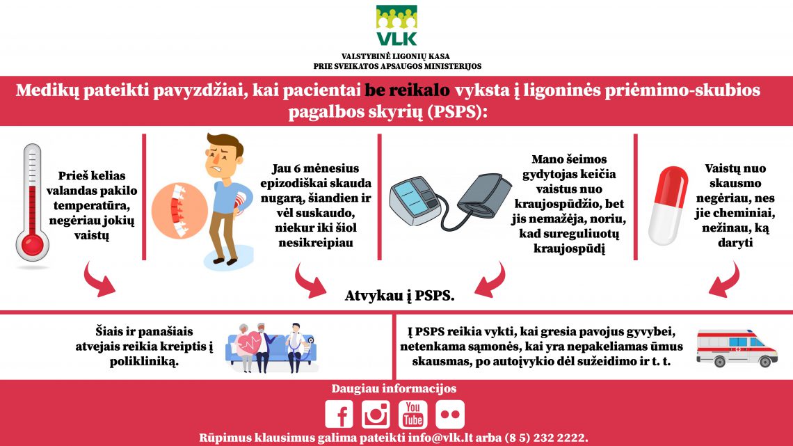 Pirma – sunegalavus reikėtų kreiptis į šeimos medicinos paslaugas teikiančią įstaigą (polikliniką ar šeimos medicinos centrą), prie kurios žmogus prisirašęs, ar į tą gydymo įstaigą, su kuria jo gydymo įstaiga yra sudariusi sutartį dėl paslaugų teikimo jai nedirbant (naktį, savaitgalį). Antra – į ligoninės skubiosios pagalbos skyrių dieną, naktį, savaitgaliais ar švenčių, poilsio dienomis reikia kreiptis tik prireikus būtinosios medicinos pagalbos. Trečia – kiekviena gydymo įstaiga – poliklinika ir ligoninė – pagal kompetenciją tiek apdraustiems privalomuoju sveikatos draudimu (PSD), tiek neapsidraudusiems privalo užtikrinti būtinąją medicinos pagalbą.