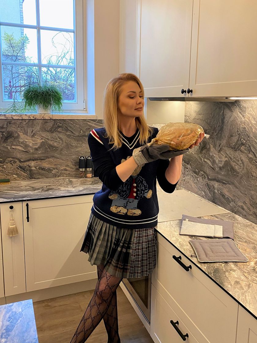 „Kalėdų jau nuo vaikystės neįsivaizduoju be gausaus šeimos būrio ir tradiciniais patiekalais nukloto stalo, ant kurio puikuojasi kepta žuvis, balta mišrainė, kisielius, nuo praėjusios Kūčių nakties liekantys kūčiukai ir daugybė kitų gardžių valgių. Žinoma, autentišką aurą sukuria ir šviežių mandarinų kvapas. Kaip pagrindinį patiekalą mano mama jau nuo vaikystės kepa antį, tačiau prisidėti pastaraisiais metais stengiuosi ir aš – ant stalo patiekiu vis tobulinamą kepto viščiuko receptą. Galima sakyti, kad tokiu būdu bandau netiesiogiai konkuruoti su mama“, – šypsosi pašnekovė.
