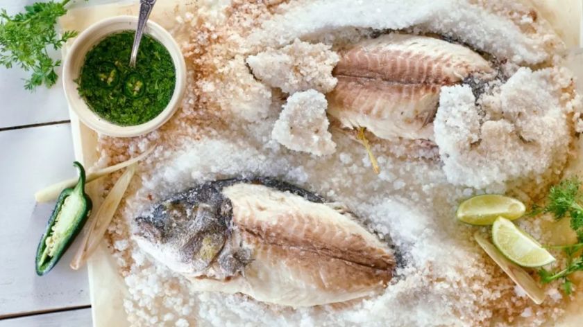 Nors šis gaminimo būdas gali būti taikomas tiek mėsai, tiek žuviai, vis dėlto, anot specialisto, populiariausia druskoje kepti žuvis, turinčias mažai kaulų. „Tokiam kepimui puikiai tiks upėtakiai, lašišos, karpiai, jūros ešeriai bei dorados. Druska veikia kaip apsauginis sluoksnis, neleidžiantis žuvies sultims išgaruoti kepant. Nors gali atrodyti, kad iškepusi žuvis bus per sūri, iš tiesų dorada įsisavins tiek druskos, kiek jai reikės, todėl bus sultinga ir skani. Dar vienas pliusas, kad jam nereikia daug papildomų ingredientų“, – sako „Rimi“ ekspertas.