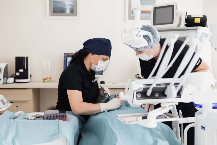 Pirmasis žingsnis – išsami konsultacija. Jos metu atliekamos panoraminės ar 3D rentgeno nuotraukos, įvertinama kaulo būklė, sudaromas išsamus gydymo planas. Vėliau atliekama implantacija – apie 1,5 valandos trunkanti procedūra, kurios metu, esant poreikiui, pašalinami pažeisti dantys, tam, kad protezas atrodytų tolygiai bei natūraliai – suformuojamas kaulo kontūras, ir įsriegiami keturi implantai. Visa tai atliekama taikant vietinę nejautrą arba, pacientui pageidaujant, sedaciją, kuri leidžia visiškai atsipalaiduoti ir išvengti bet kokių nemalonių pojūčių.