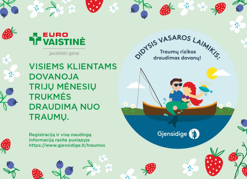 Pagrindinis šalies vaistinių tinklas, pirmąją vasaros dieną inicijavęs projektą „Sveika vasara“, kartu su draudimo bendrove „Gjensidige“ visiems „Eurovaistinės“ klientams dovanoja draudimą nuo traumų 3 mėnesių laikotarpiui.