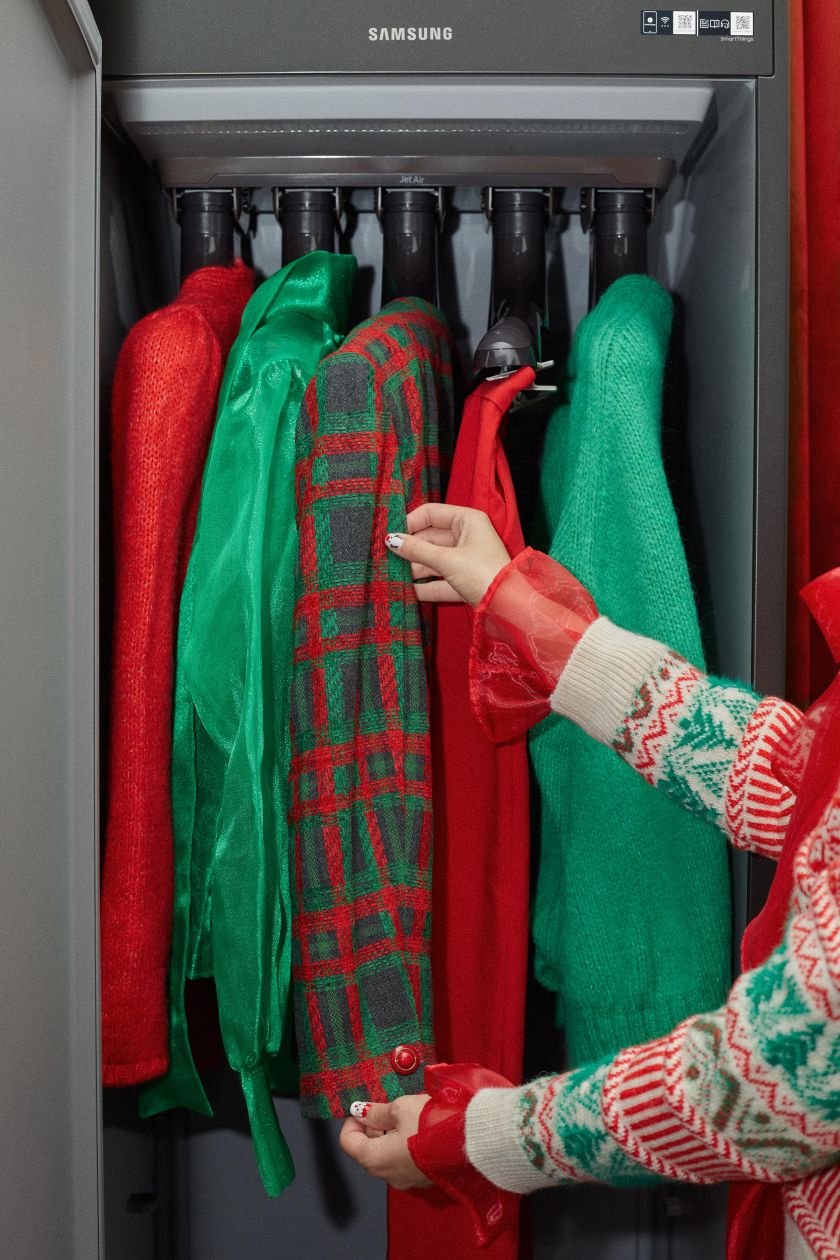 Šiais laikais tinkamai prižiūrėti savo apdarus nėra sunku – egzistuoja galybė įvairių chemijos priemonių ar net prietaisų, gelbstinčių drabužių priežiūroje. Tai gali būti tiek daugumai pažįstamas pūkų rinkiklis, tiek išmanios skalbimo mašinos funkcija, tausojanti drabužius. Vis dėlto, stilistė pataria savo drabužius skalbti kiek įmanoma rečiau, ypač, jei tai daroma aukštoje temperatūroje, kadangi skalbimas pagreitina audinio dėvėjimosi procesą. Vietoje to vertėtų apsvarstyti investiciją į tokius įrenginius kaip pačios stilistės naudojama „Samsung Airdresser“ drabužių priežiūros sistema, kuris padeda iš audinio pašalinti blogus kvapus, švelniai džiovina ir lygina, taip palaikydama drabužio švarą tarp skalbimų.