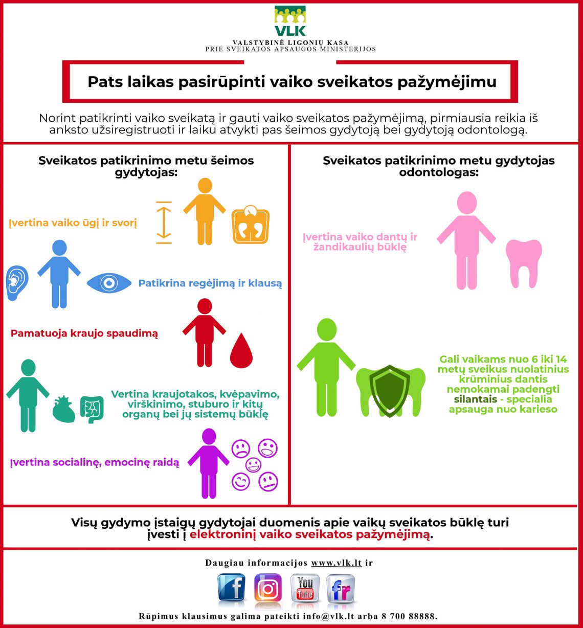„Šie metai – ne išimtis. Kaip ir kiekvieną vasarą, tėveliai su vaikais atostogauja ir apsilankymus gydymo įstaigose atidėlioja. Tėvelius raginame jau dabar pasirūpinti vaiko profilaktiniu sveikatos tikrinimu, nelaukiant naujų mokslo metų pradžios, kai įstaigose galimos eilės“, – sako VLK Paslaugų ekspertizės ir kontrolės skyriaus vyriausioji specialistė Oksana Burokienė.