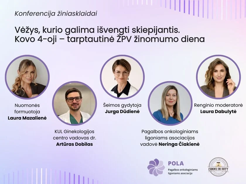 Kviečiame jus į konferenciją žiniasklaidai, kurioje bus pristatytas 2026-ųjų vasario mėn. atliktas gyventojų nuomonės tyrimas dėl vėžio prevencijos ir ŽPV, šios srities gydytojai apžvelgs, ko trūksta Lietuvai, kad įgyvendintumėm Pasaulio Sveikatos Organizacijos ir Europos Komisijos nustatytą tikslą – iki 2030ųjų eliminuoti gimdos kaklelio vėžį.